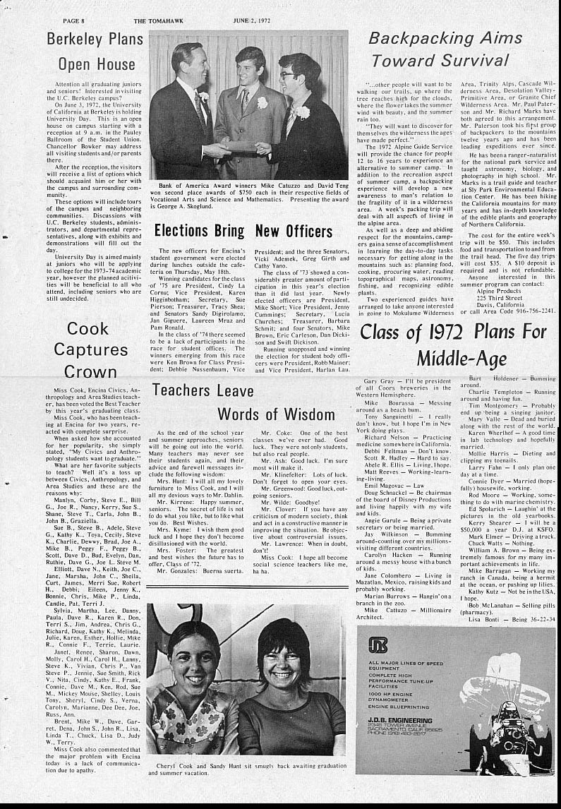Here is the June 2, 1972 issue of the Tomahawk, courtesy of Craig Moseley 72. This is the paper dedicated to the graduating class of 72.